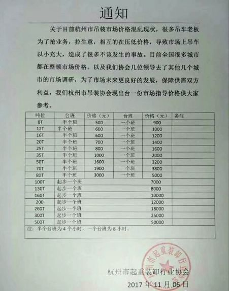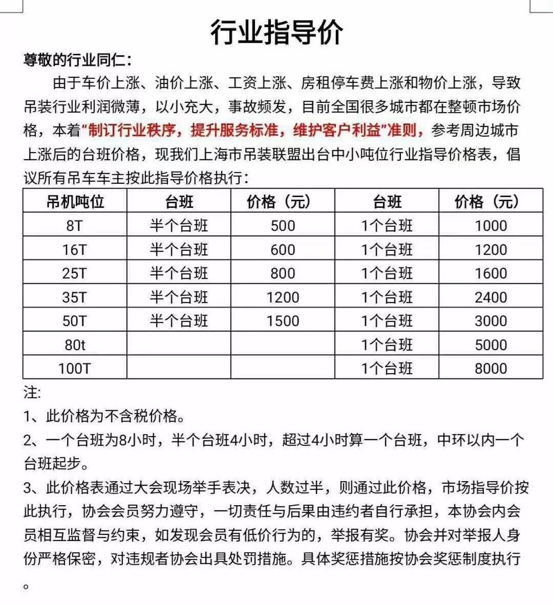 發(fā)布時(shí)間 : 2019-03-29 08:02 瀏覽量 : 1091 最近,全國(guó)各地紛紛成立了不少吊裝聯(lián)盟和協(xié)會(huì),并且很多都制定了本協(xié)會(huì)的吊車租賃指導(dǎo)價(jià),現(xiàn)搜羅了一些供大家參考: