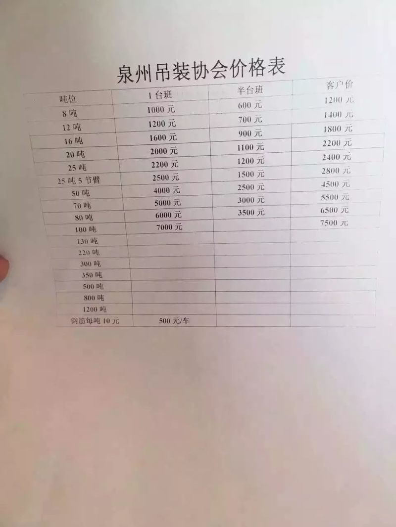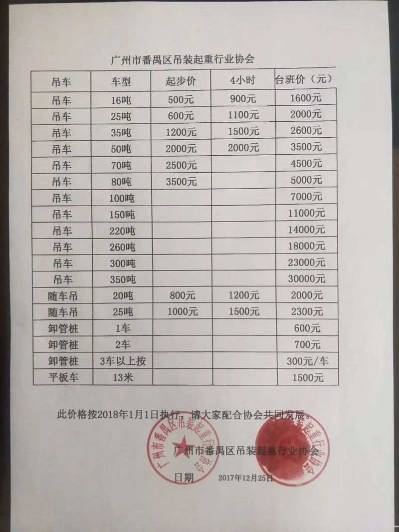 廣州市番禺區(qū)吊裝起重行業(yè)協(xié)會(huì)輪式汽車吊指導(dǎo)價(jià)格表,一般根據(jù)噸位按臺(tái)班計(jì)算租賃費(fèi)