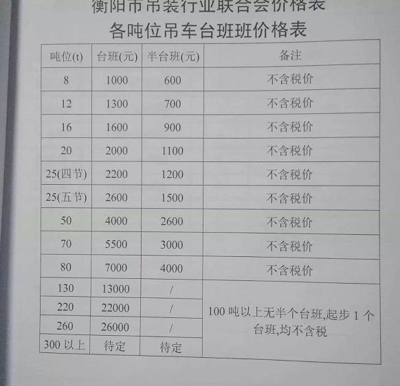 衡陽(yáng)市吊裝行業(yè)聯(lián)合會(huì)輪式汽車吊價(jià)格指導(dǎo)表,一般根據(jù)噸位按臺(tái)班計(jì)算租賃費(fèi)